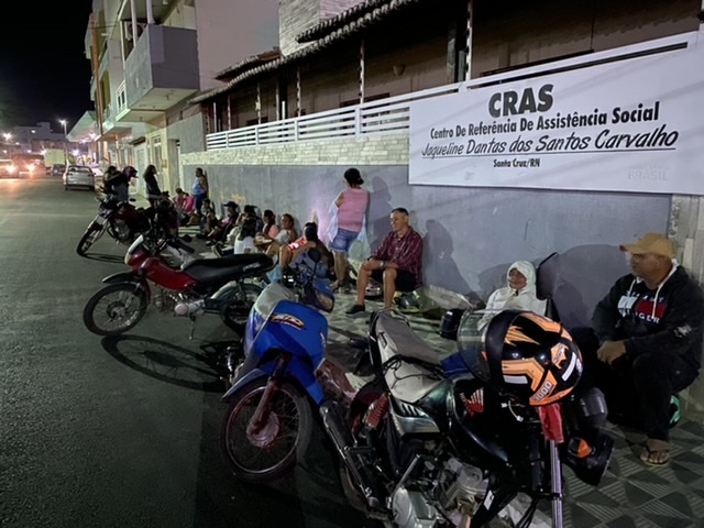 Desde o começo da noite desta quarta (28), dezenas de pessoas estão na fila do CRAS para pegar uma ficha para agendar o cadastramento do